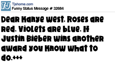 - # 37705 Dear Kanye, Roses are Red, Voilets are Blue, If Justin Bieber wins an AMA, you know what to do!