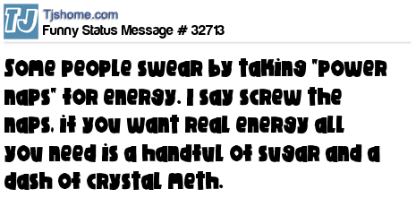 X Some people swear by taking "power naps" for energy. I say screw the naps, if you want real energy all you need is a handful of sugar and a dash of crystal meth.
