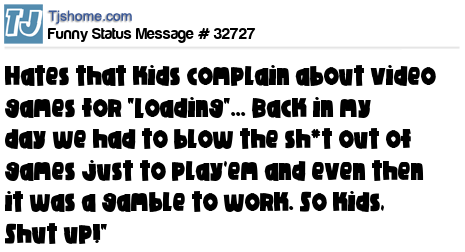 X hates that kids complain about video games for "Loading"... Back in my day we had to blow the sh*t out of games just to play'em and even then it was a gamble to work. So kids, Shut up!"