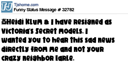 X ~Heidi Klum & I have resigned as Victoria's Secret models. I wanted you to hear this sad news directly from me and not your crazy neighbor Earle.