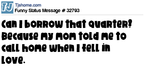 X says Can I borrow that quarter? Because my mom told me to call home when I fell in love.