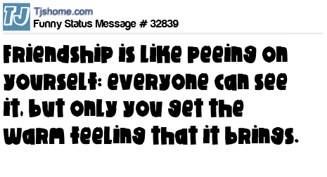 - # 48863 Friendship is like peeing on yourself: everyone can see it, but only you get the warm feeling that it brings.