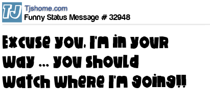 X is Excuse you, I'm in your way ... you should watch where I'm going!!