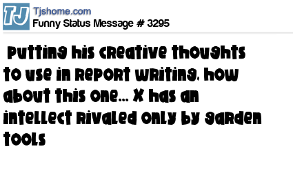 X putting his creative thoughts to use in report writing, how about this one... X has an intellect rivaled only by garden tools