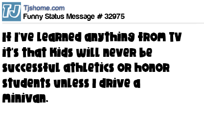 X If I've learned anything from TV it's that kids will never be successful athletics or honor students unless I drive a minivan.