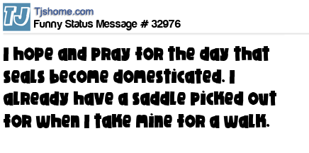 X I hope and pray for the day that seals become domesticated. I already have a saddle picked out for when I take mine for a walk.