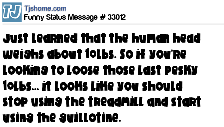 X just learned that the human head weighs about 10lbs. So if you're looking to loose those last pesky 10lbs... it looks like you should stop using the treadmill and start using the guillotine.