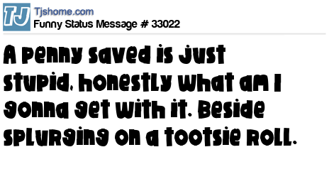 X A penny saved is just stupid, honestly what am I gonna get with it. Beside splurging on a tootsie roll.