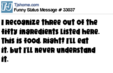 X I recognize three out of the fifty ingredients listed here. This is food, right? I'll eat it, but I'll never understand it.