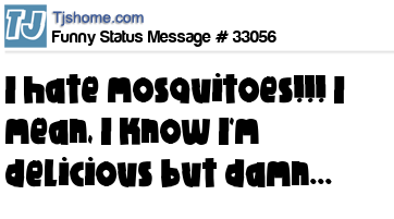 X says I hate mosquitoes!!! I mean, I know I'm delicious but damn...