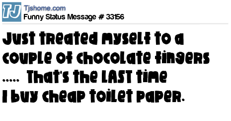 X is Just treated myself to a couple of chocolate fingers ..... That's the LAST time I buy cheap toilet paper.