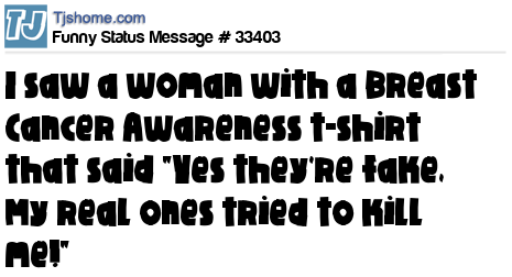 - # 48736 There should be a Breast Cancer Awareness T-shirt that says "Yes they're fake! My real one's tried to kill me!"
