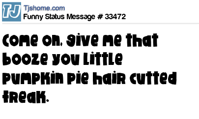 X Come on, give me that booze you little pumpkin pie hair cutted freak.