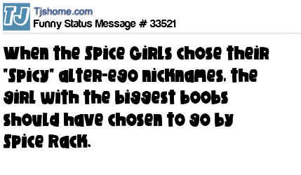 X When the Spice Girls chose their "Spicy" alter-ego nicknames, the girl with the biggest boobs should have chosen to go by Spice Rack.