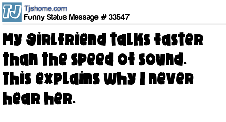 X is My girlfriend talks faster than the speed of sound. This explains why I never hear her.