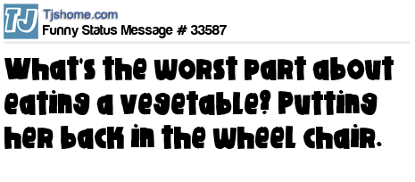 X What's the worst part about eating a vegetable? Putting her back in the wheel chair.