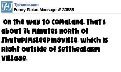 X is on the way to Comaland. That's about 24 minutes north of Shutupimsleepingville, which is right outside of Setthealarm Village.