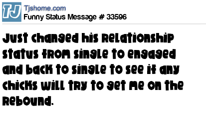 X just changed his relationship status from single to engaged and back to single to see if any chicks will try to get me on the rebound.