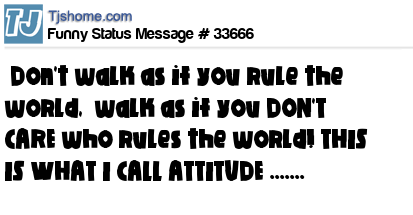 X is Don't walk as if you rule the world, walk as if you DON'T CARE who rules the world! THIS IS WHAT I CALL ATTITUDE .......
