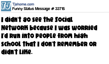 X I didn't go see the Social Network because I was worried I'd run into people from high school that I don't remember or didn't like.