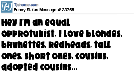 X is Hey I'm an equal opprotunist. I love blondes, brunettes, redheads, tall ones, short ones, cousins, adopted cousins...
