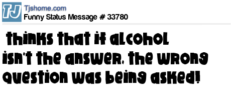 - # 31535 Alcohol is not the answer, it just makes you forget the question.