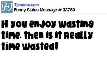 - # 62091 So you're here reading my status wasting valuable work time or just procrastinating. Don't feel so bad, I procrastinated and then wasted valuable work time writing it.