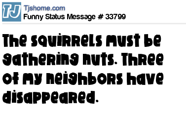 - # 42778 We are in for such a cold winter this year that the squirrels are collecting more nuts than usual and so far 3 of my neighbors have disappeared, Are you all OK?