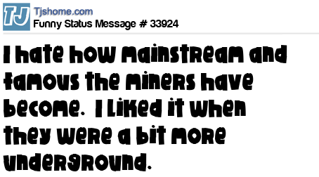 X I hate how mainstream and famous the miners have become. I liked it when they were a bit more underground.