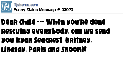 X Dear Chile --- When you're done rescuing everybody, can we send you Ryan Seacrest, Britney, Lindsay, Paris and Snooki?