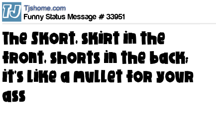 - # 23753 The Skirt, skirt in the front, shorts in the back; it's like a mullet for your ass!!