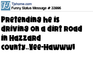 X is pretending he is driving on a dirt road in Hazzard county..Yee-Hawww!