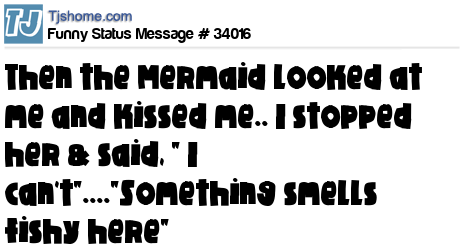 X Then the Mermaid looked at me and kissed me.. I stopped her & said, " I can't"...."Something smells fishy here"