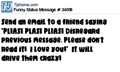 X says Send an email to a friend saying "PLEASE PLASE PLEASE Disregard previous message. Please don't read it! I love you!" It will drive them crazy!