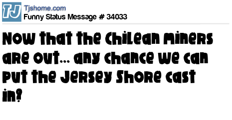 X says now that the Chilean miners are out... any chance we can put the Jersey Shore cast in?