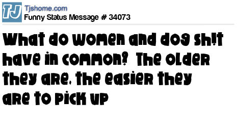 - # 205755 Women are like dog doo. The older they get, the easier they are to pick up.