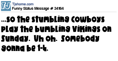 X is ...so the stumbling Cowboys play the bumbling Vikings on Sunday. Uh oh. Somebody gonna be 1-4.