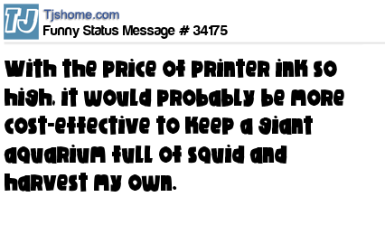 X With the price of printer ink so high, it would probably be more cost-effective to keep a giant aquarium full of squid and harvest my own.
