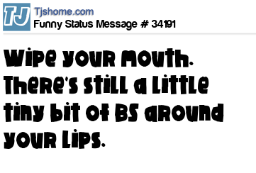 - # 25487 Wipe your mouth. There's still a tiny bit of bullsh*t around your lips.
