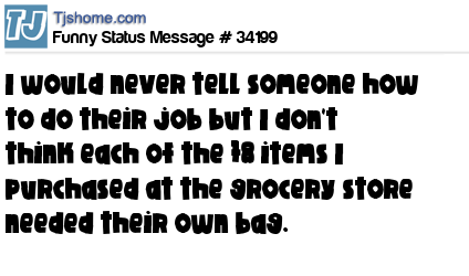 X I would never tell someone how to do their job but I don't think each of the 78 items I purchased at the grocery store needed their own bag.