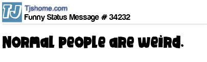 - # 14170 There is no such thing as "normal". There is only a lot of weird people doing the same weird things.