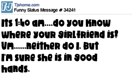 X says Its 1:40 am....do you know where your girlfriend is? Um......neither do I. But I'm sure she is in good hands.