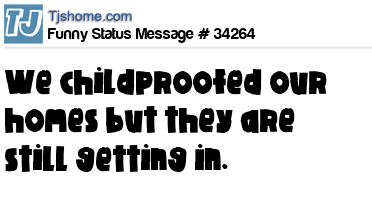 - # 162328 My neighbor told me he childproofed his house. And the very next day his wife came home with a newborn... Worst... Childproofer... Ever.