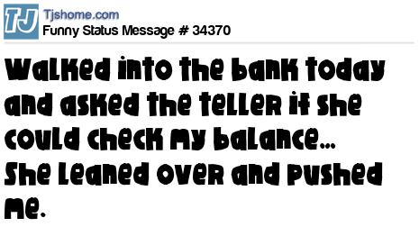 X Walked into the bank today and asked the teller if she could check my balance… She leaned over and pushed me.