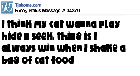 X says I think my cat wanna play hide n seek, thing is I always win when I shake a bag of cat food