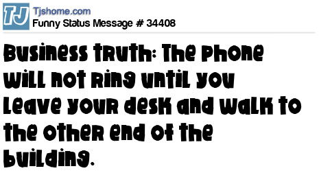 X says Business truth: The phone will not ring until you leave your desk and walk to the other end of the building.