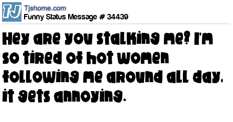 X Hey are you stalking me? I'm so tired of hot women following me around all day, it gets annoying.