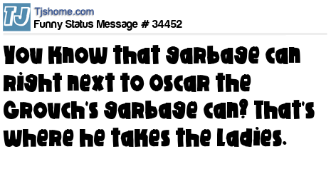 X You know that garbage can right next to Oscar the Grouch's garbage can? That's where he takes the ladies.