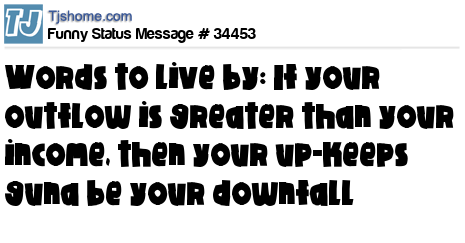 X is Words to live by: If your outflow is greater than your income, then your up-keeps guna be your downfall