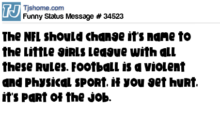 X The NFL should change it's name to the little girls league with all these rules. Football is a violent and physical sport, if you get hurt, it's part of the job.